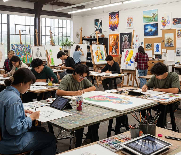Cursos focados em técnicas visuais que estimulam a criatividade e a expressão artística dos alunos.